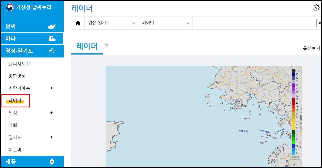 합성영상 > 레이더 > 날씨영상 > 날씨