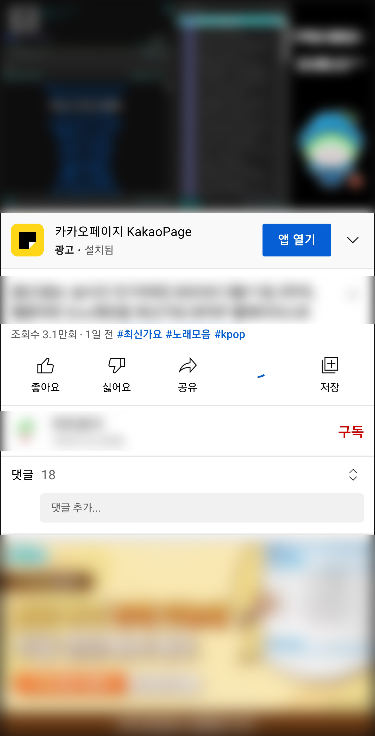 휴대폰에서 유튜브 창 내리고도 음악 나오게 하기.