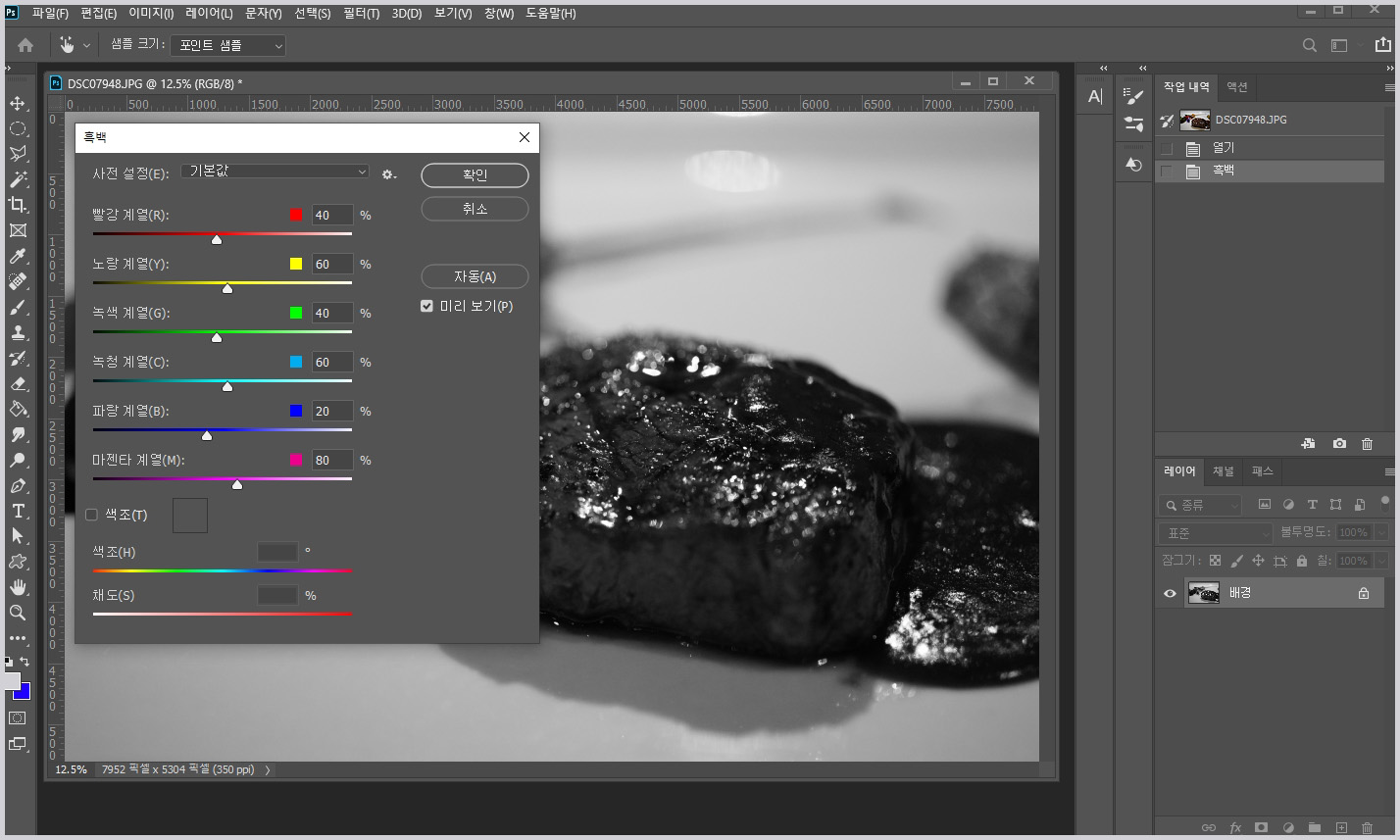 포토샵 흑백전환을 위한 이미지 불러오기.