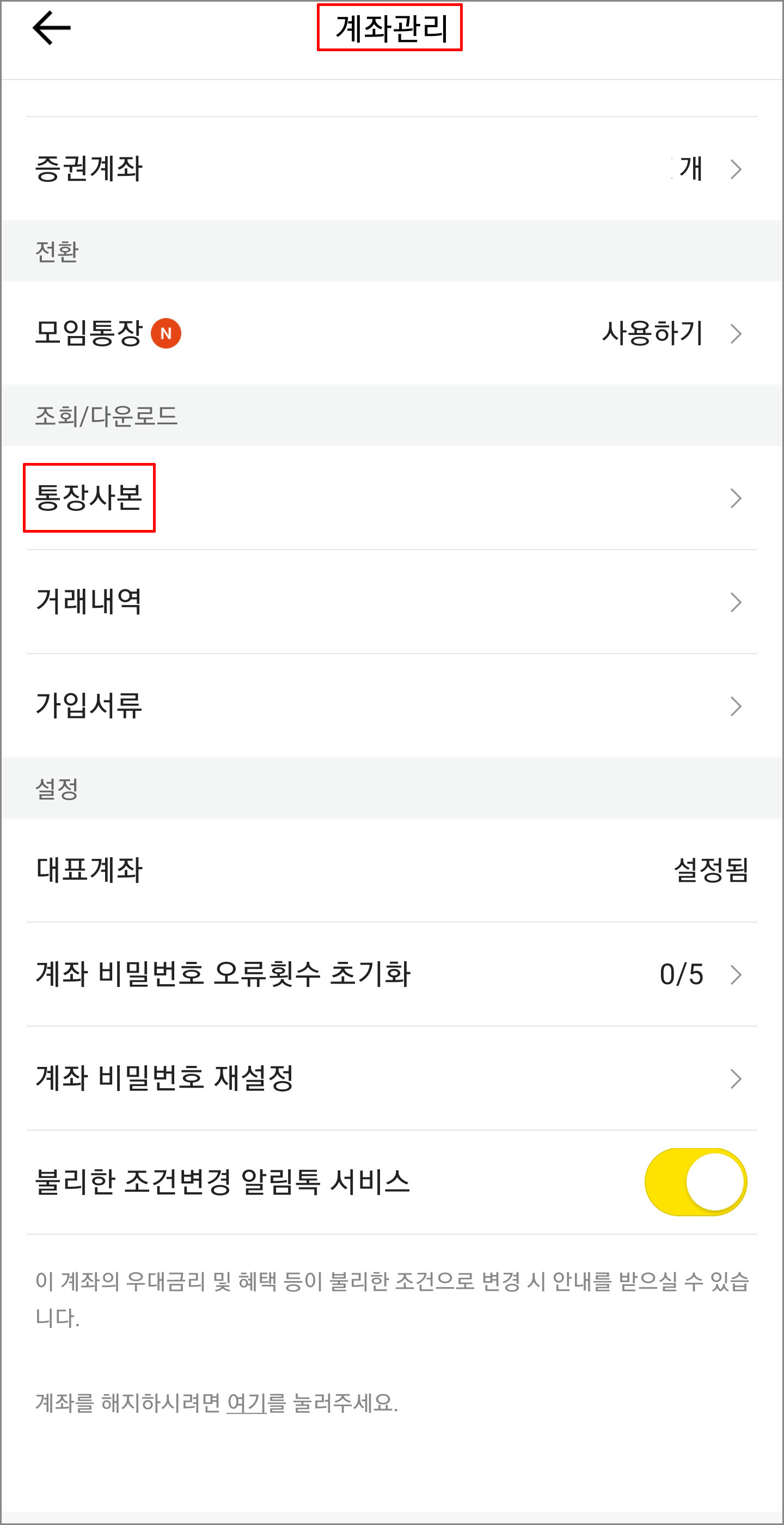 내 통장을 선택.
