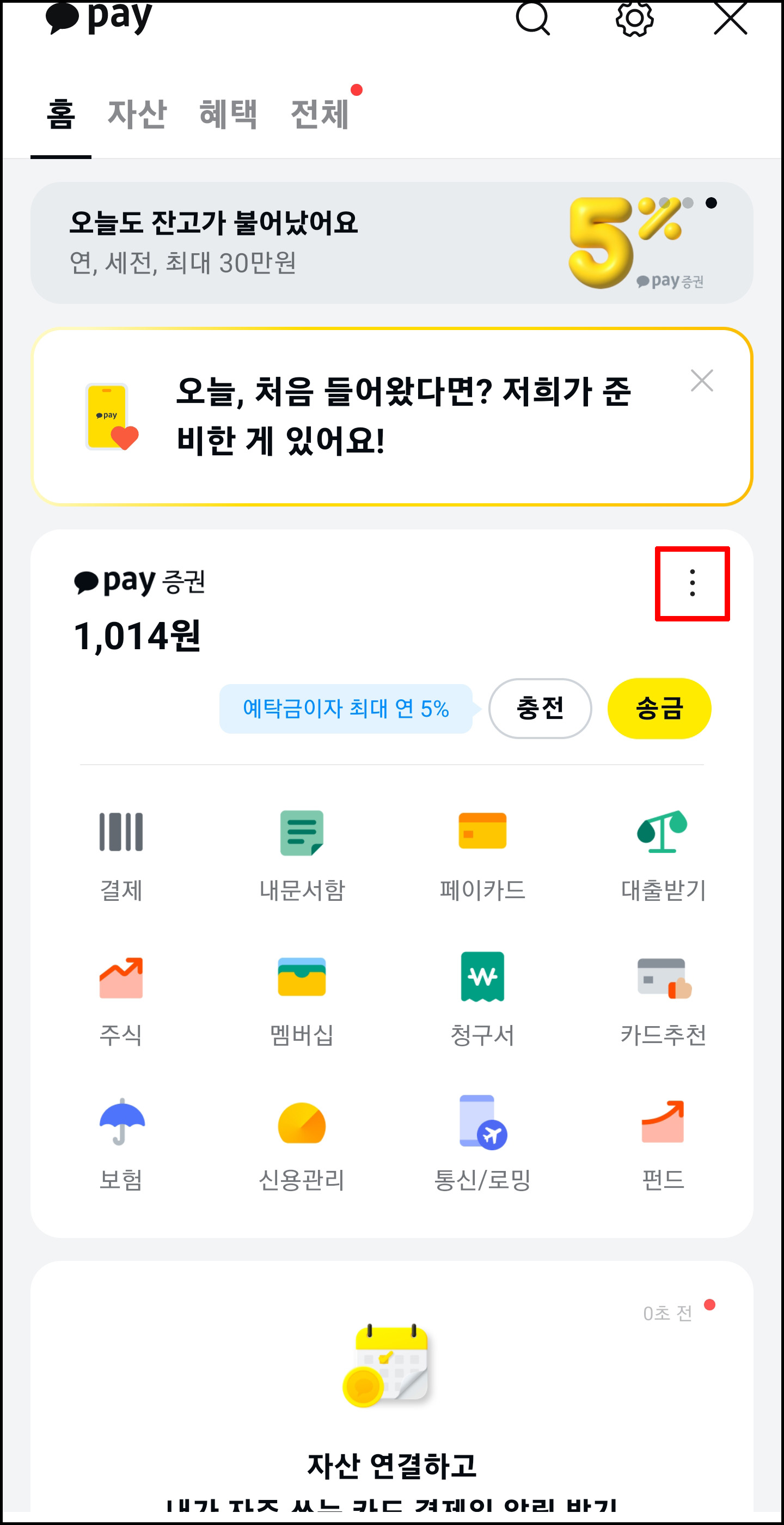 카카오페이에 진입 후 세로 점3개 클릭.