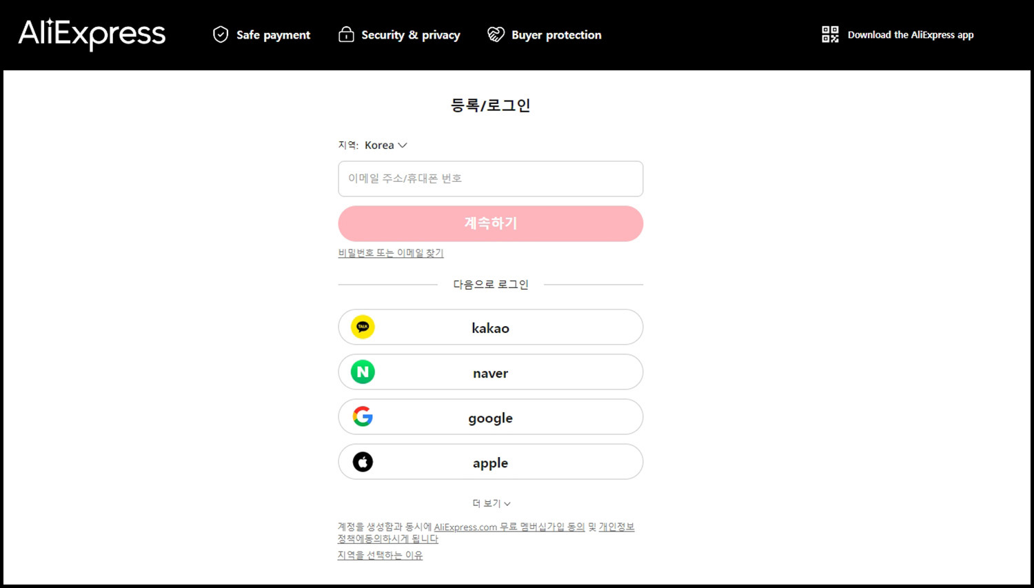 카카오, 네이버 등 다양한 방법으로 가입할 수 있고, 이메일이나 휴대폰 번호를 기입하여 가입할 수도 있습니다.