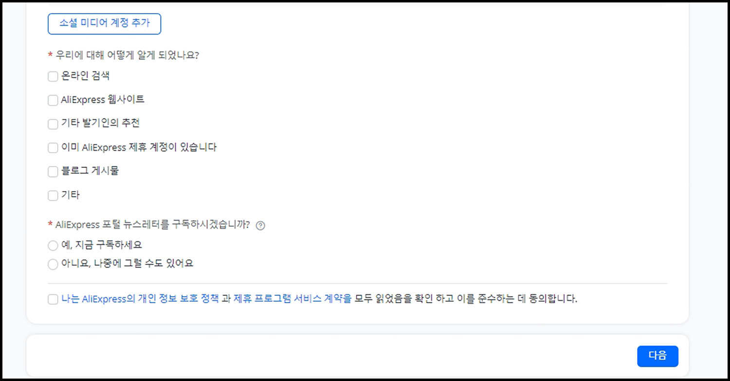 설문조사 수준으로 왜 잡다한 내용을 물어보는지 알 수는 없지만, 아무튼 기입해야 다음으로 넘어갈 수 있습니다.