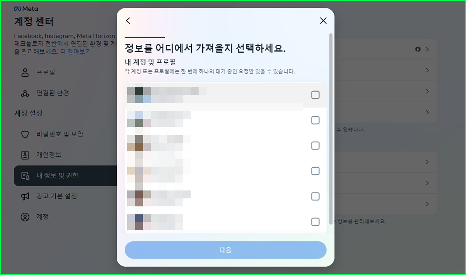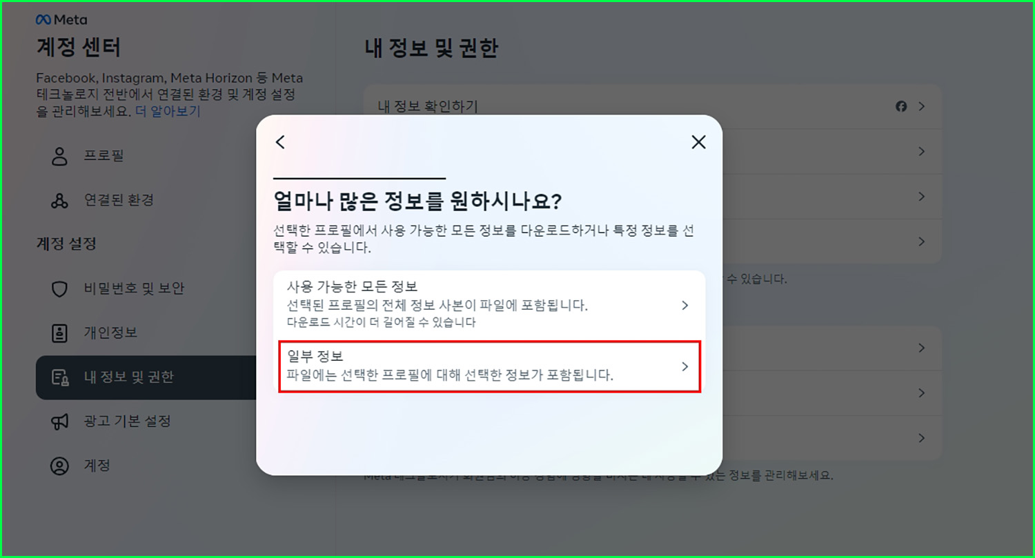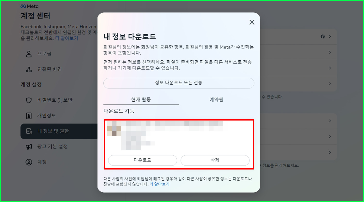 내 정보 다운로드 하기.