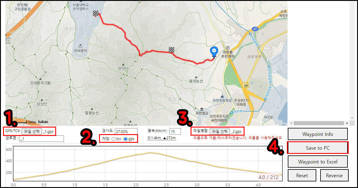 - 1번을 클릭 하여 첫 번째 GPX 파일을 엽니다.