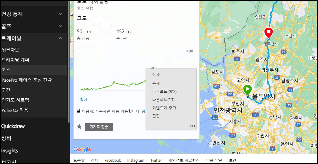 다만, 경로가 제대로 이어지지 않는다면 가민이나 두 번째 GPX에디터를 통해서 편집해줘야 합니다.