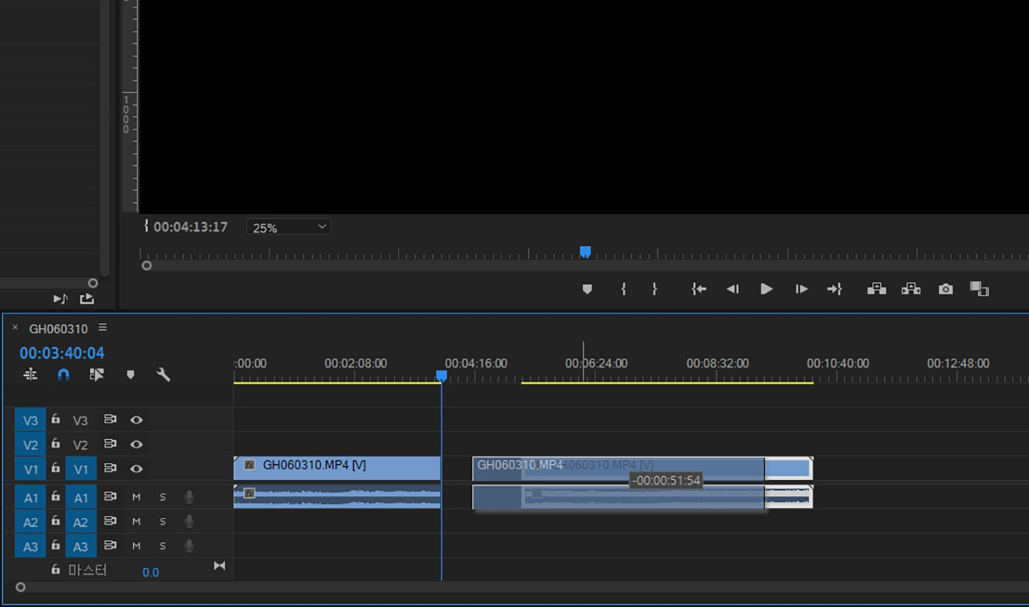 뒤에 남아 있는 클립을 앞으로 당겨서 메꾸는 방법도 있습니다. 마우스로 드레그 해서 앞으로 붙여주면 됩니다.