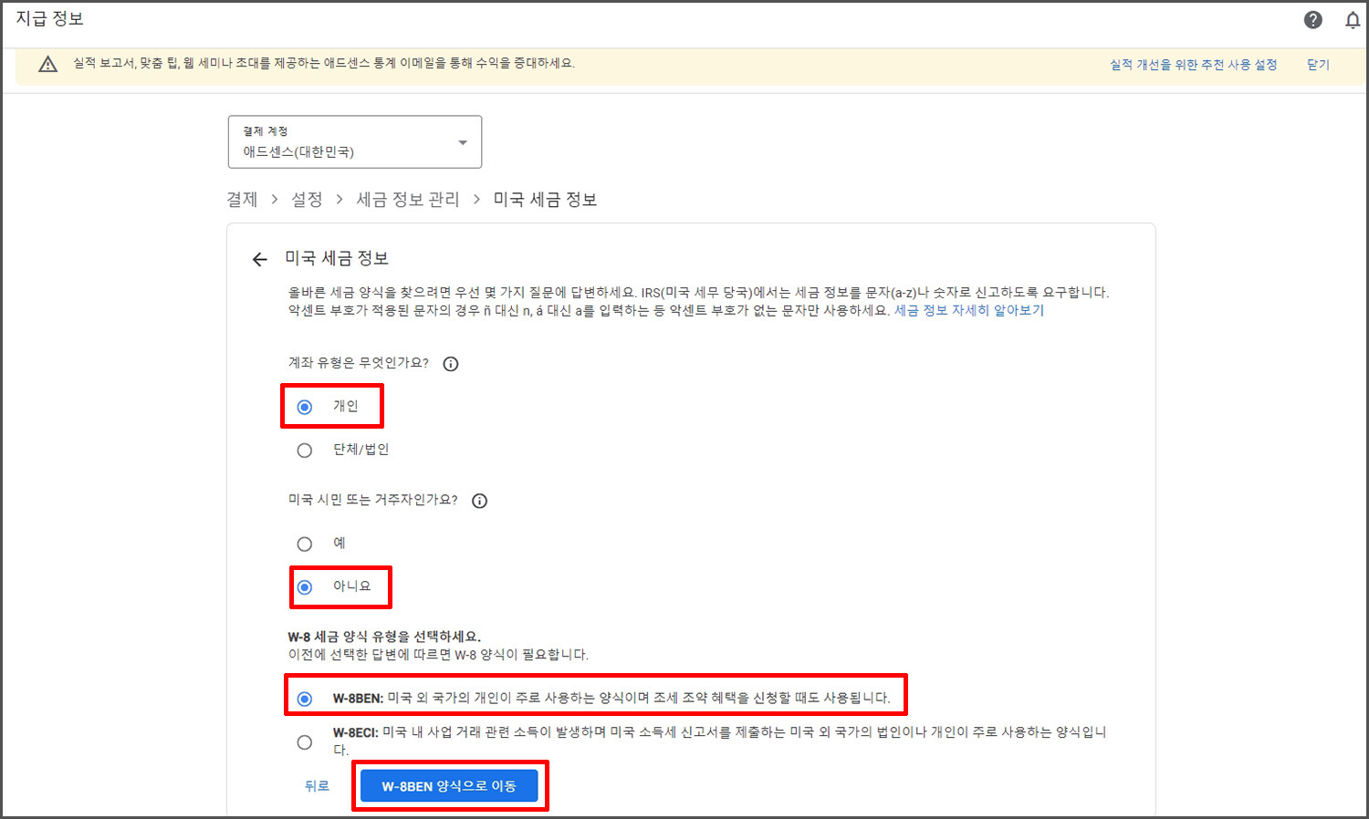 애드센스 세금 정보 제출.