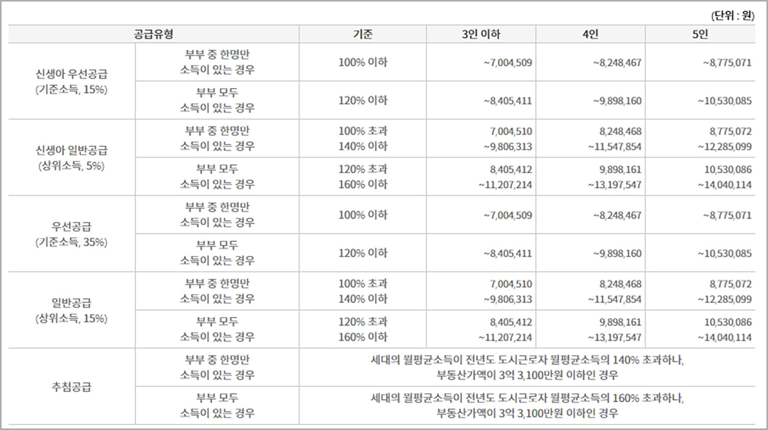 · 세대의 월평균 소득이 130%이하신생아 일반공급