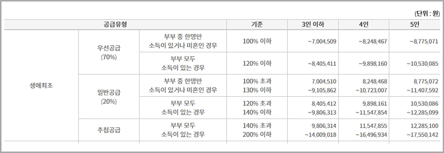 출처 : 청약홈 공공주택 생애최초 자산/소득 기준은?