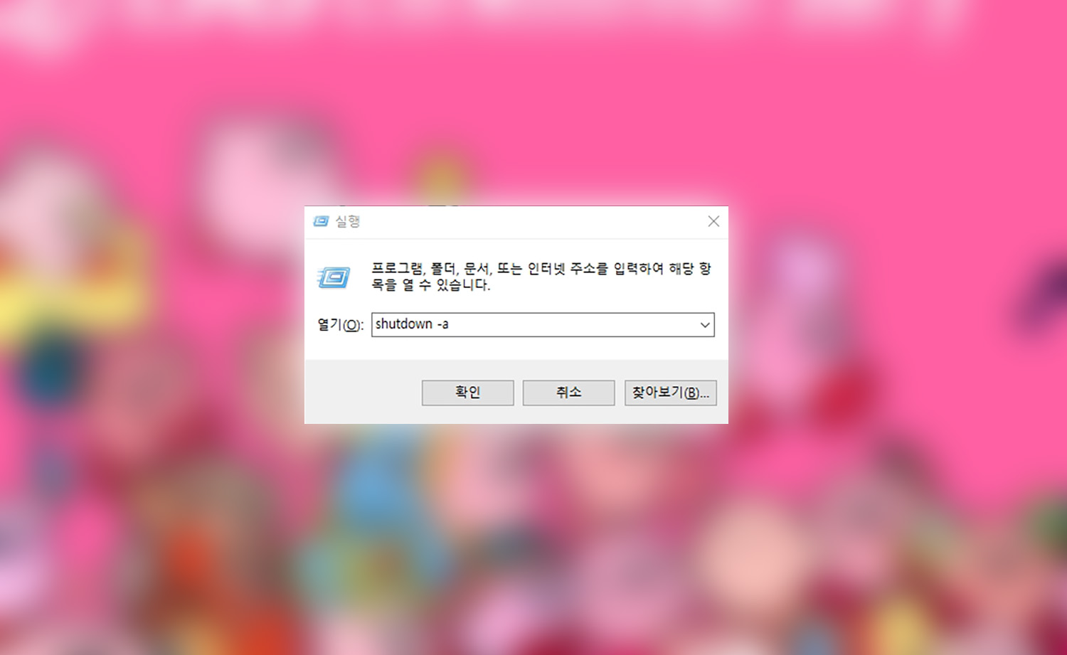 윈도우키 + R키 > 실행 창에 shotdown -a 를 입력