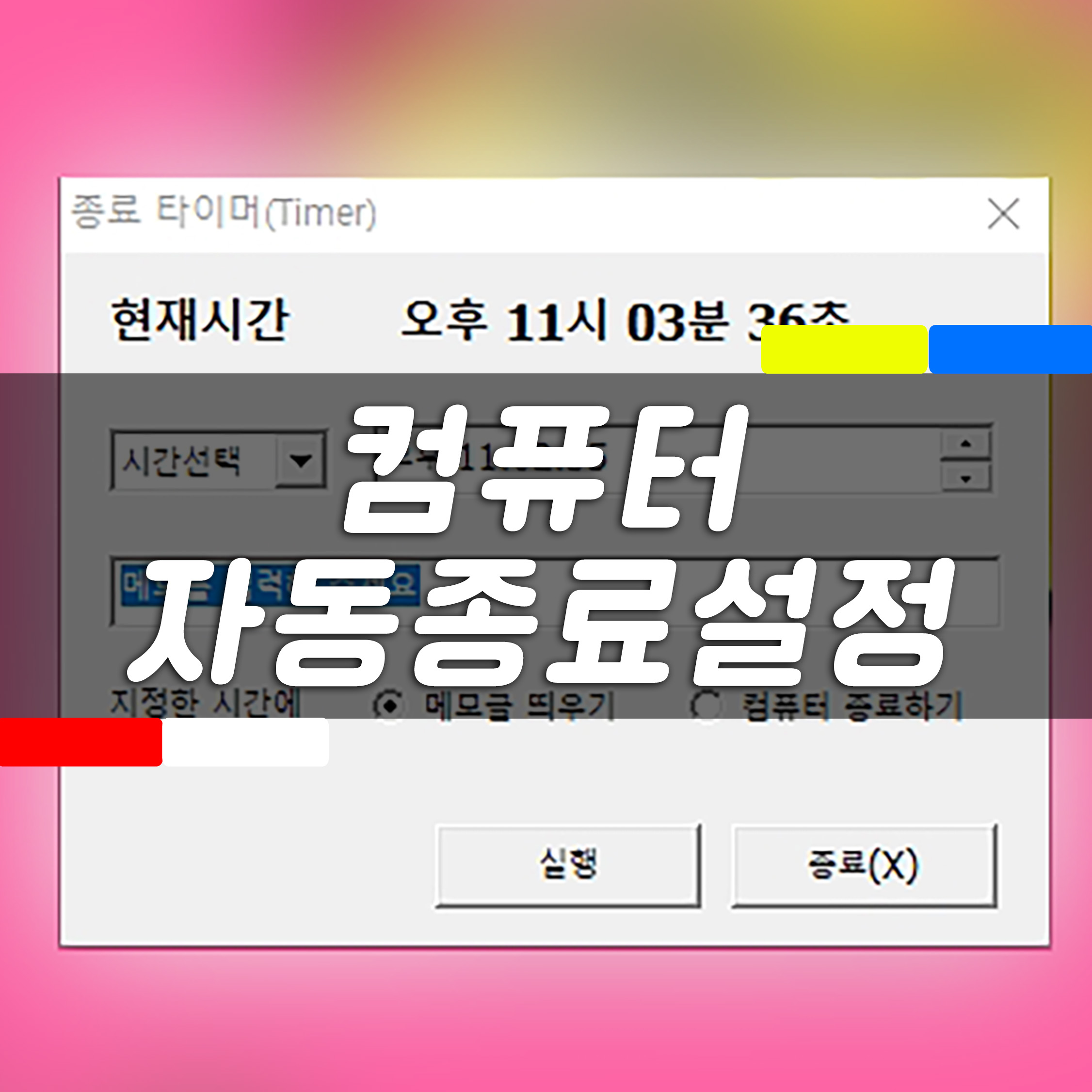 요즘은 휴대폰으로 음악을 듣지만, 예전에는 컴퓨터로 음악을 듣는 일이 많아서 잠 잘때까지만 켜 놨다가 자동으로 컴퓨터가 꺼지면 좋겠단 생각을 하기도 했었습니다. 각자 이유는 다양하겠지만, 알아두면 유용하게 사용할 날이 오겠죠.