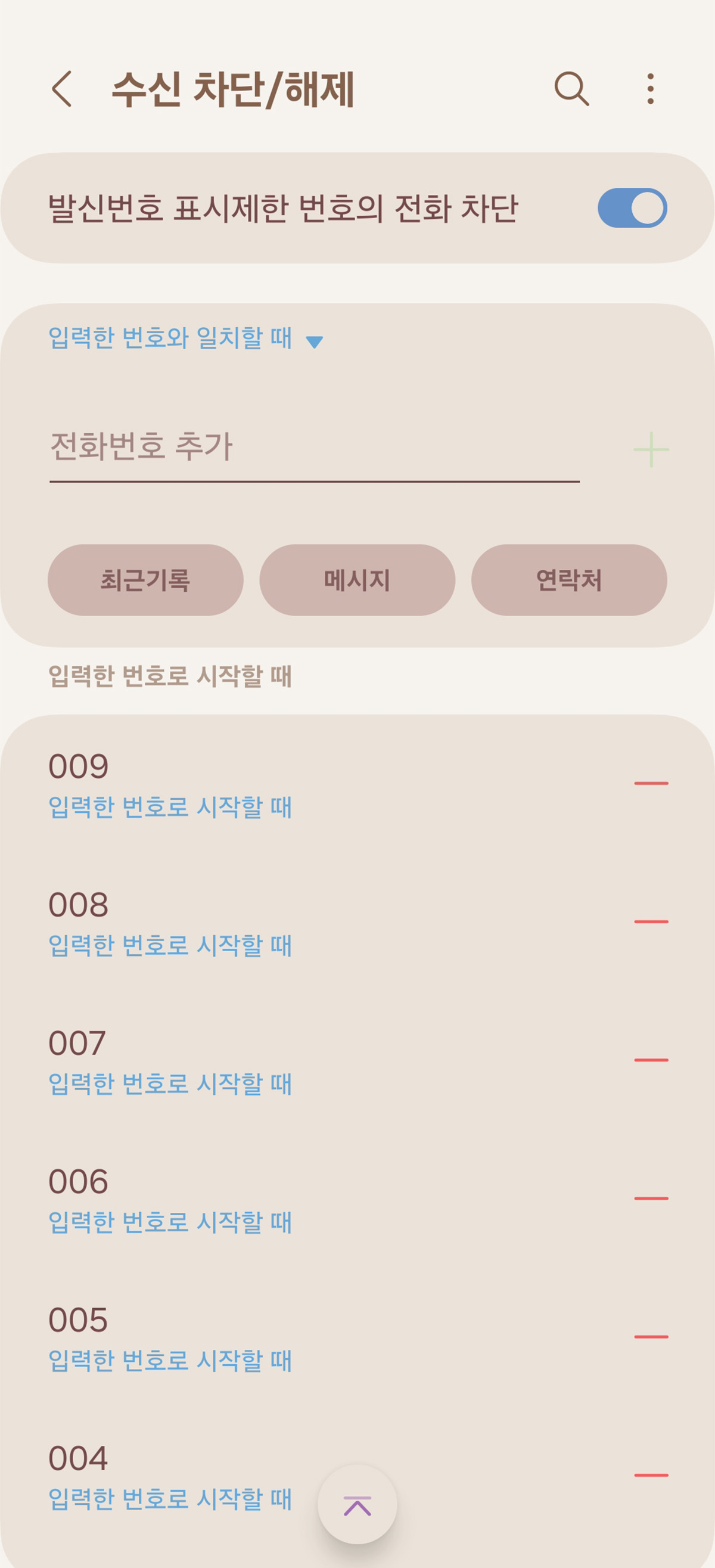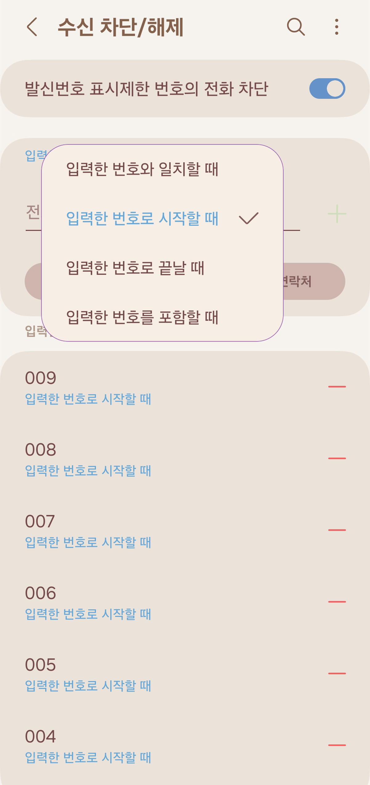 전화번호 추가 > 입력한 번호로 시작할 때 > + 클릭
