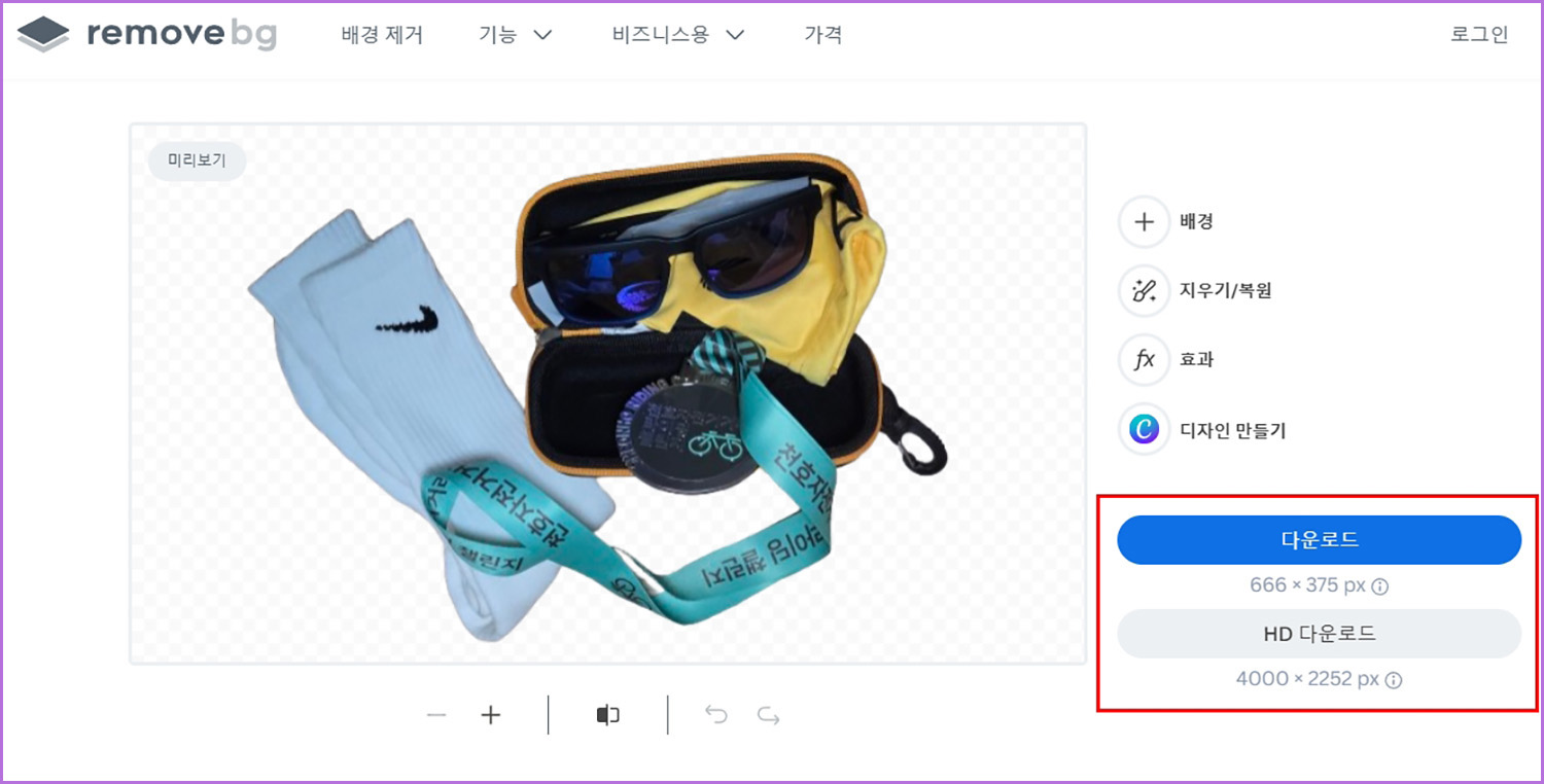 미리보기로 확인도 가능하며 무료 배경제거 사이트라서 이미지 넣고 돌리고 바로 받으시면 됩니다. 투명 배경이기 때문에 당연히 png로 다운 받아 집니다.