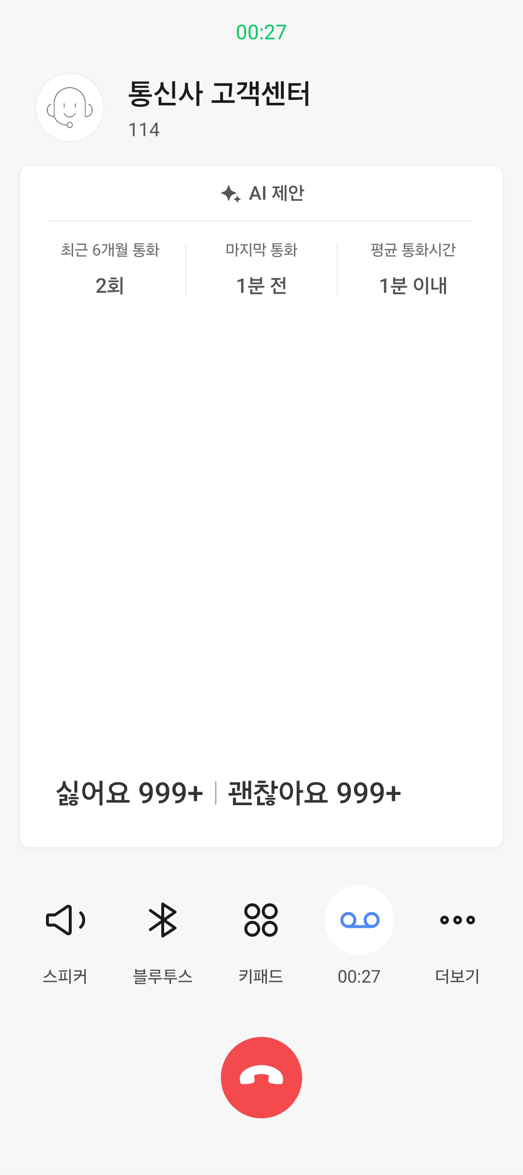 그래서 일단, 설정을 하려면 통화 중이어야 하는데, 아는 지인이나 가족에게 잠시 전화를 걸어서 설정을 해도 되고, 저와 같이 114 같은 곳에 연락을 하면 다이렉트로 연결되는 것이 아니라 안내 음성이 먼저 나오니까 전화를 건 뒤에 설정을 해도 됩니다.
