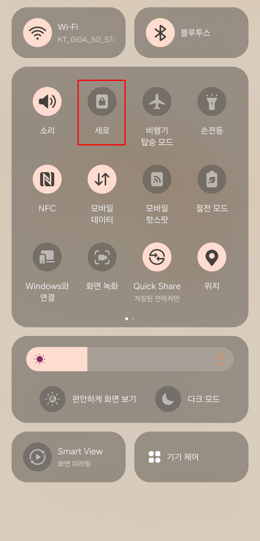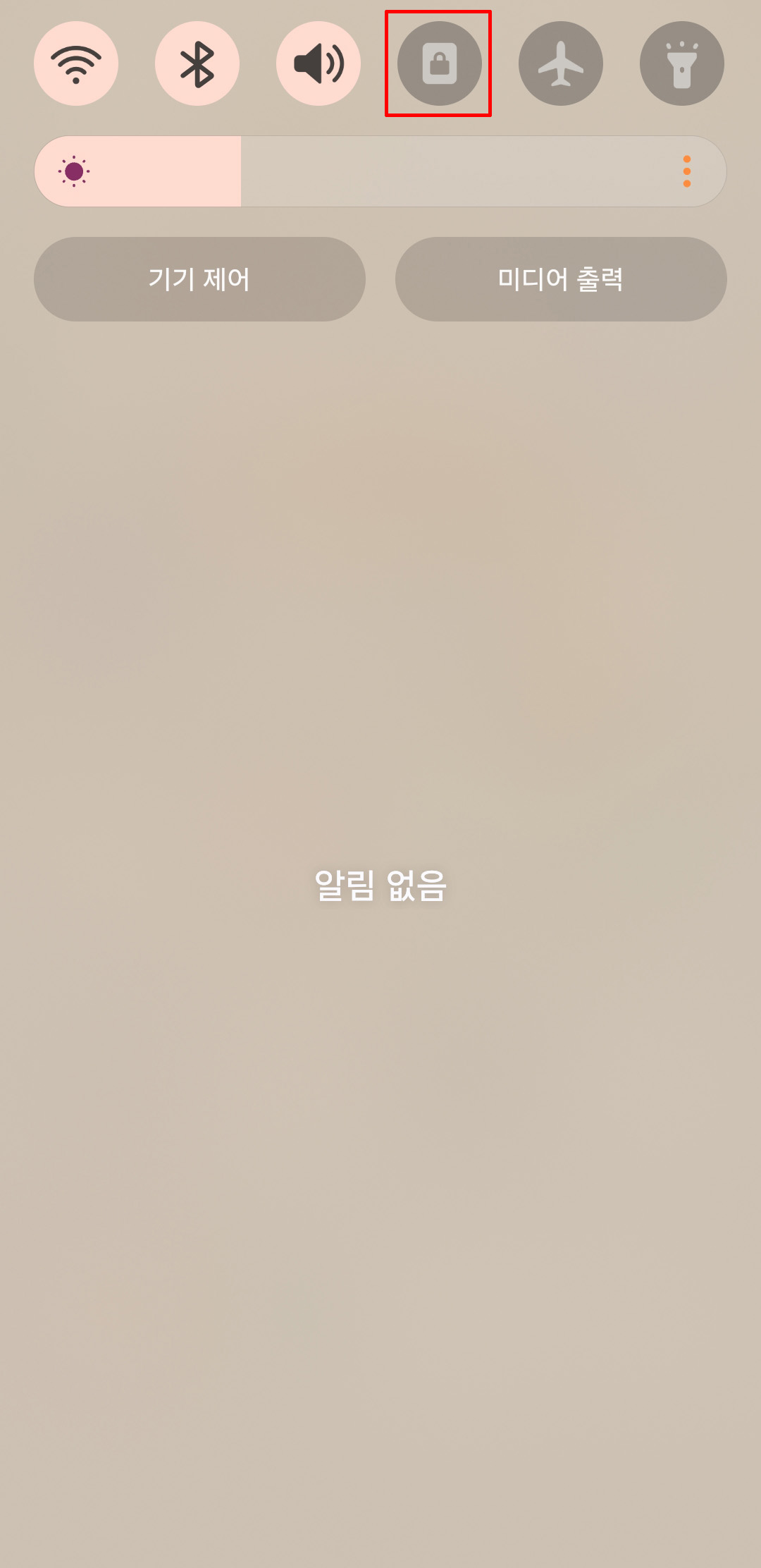 휴대폰 화면 상단에서 하단으로 드래그(쓸어내리기) 하면 옵션 버튼과 기타 여러가지 기능 버튼이 나옵니다. 이 때 자동회전 버튼이 나온다면 바로 클릭하시면 되고, 안 보인다면 한 번 더 아래로 내리면 길게 화면이 내려오면서 모든 버튼을 보실 수 있습니다.