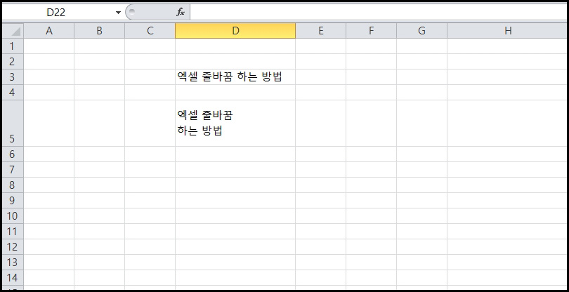 보통은 엔터키를 통해 줄을 바꾸게 되는데, 엑셀에서는 Alt를 누른 상태로 엔터키를 누르면 됩니다.
