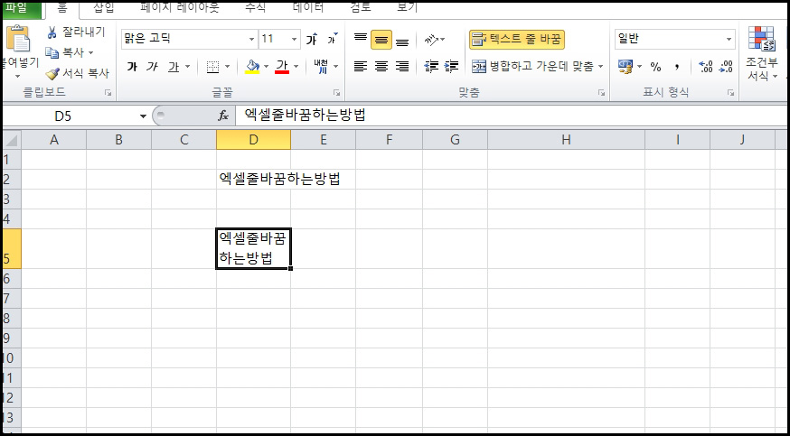 엑셀 줄바꾸기 다른 방법.