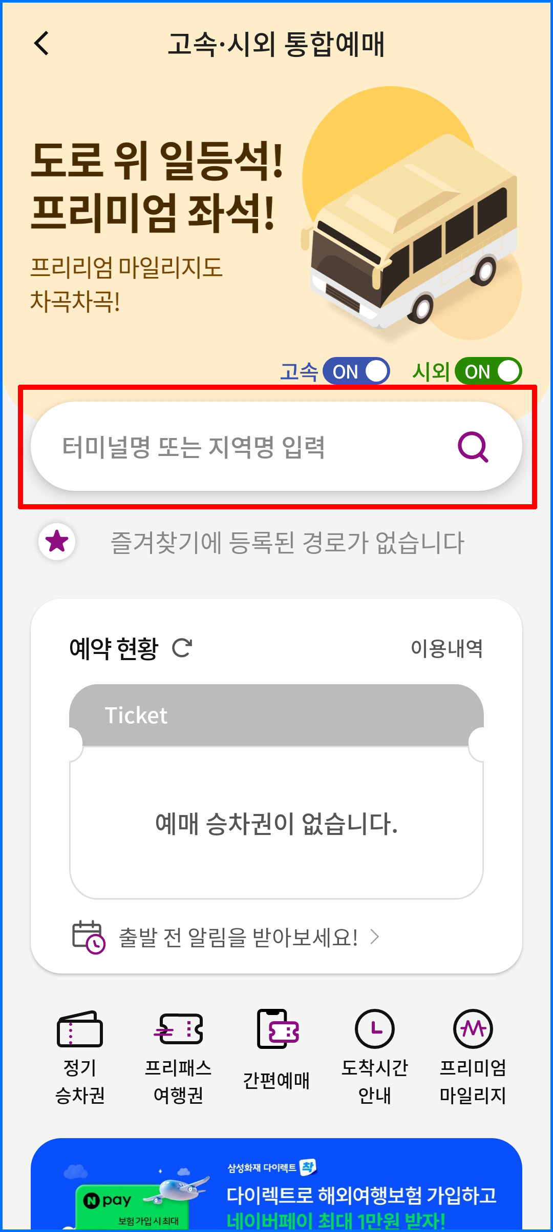② 고속·시외 클릭