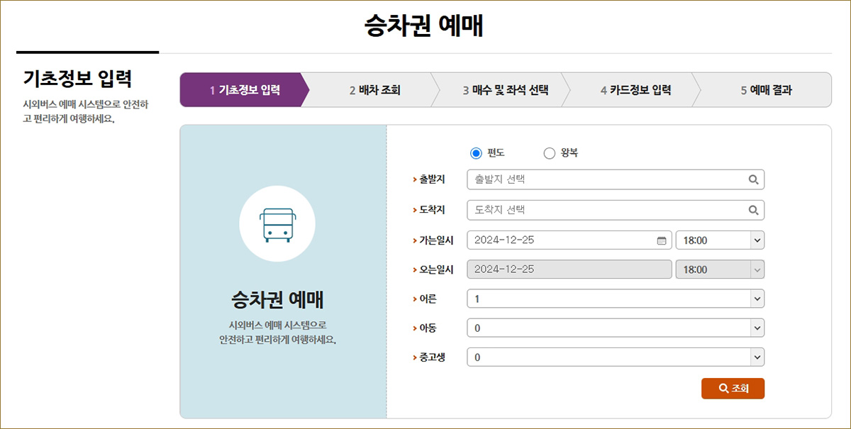3️⃣ 가는 날짜와 시간 및 오는 날짜와 시간 선택(왕복 선택 시)
