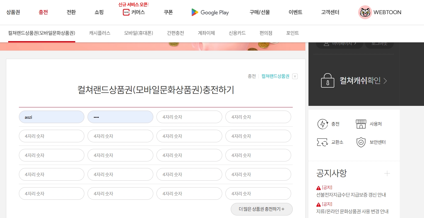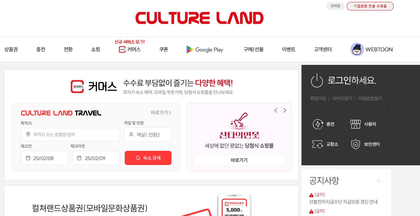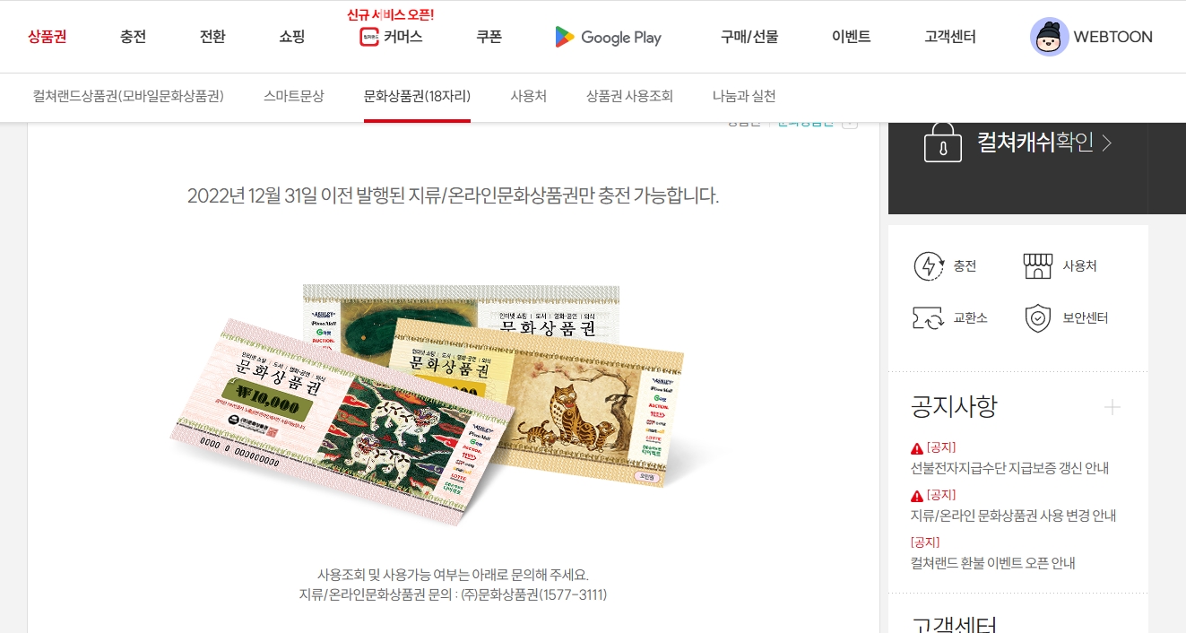 컬쳐랜드가 아닌 컬쳐상품권 홈페이지