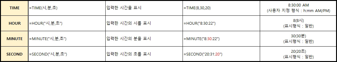 =TIME(시,분,초)