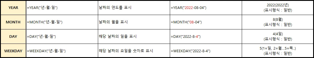 MS 엑셀 그대로 적용되는 날짜 함수.
