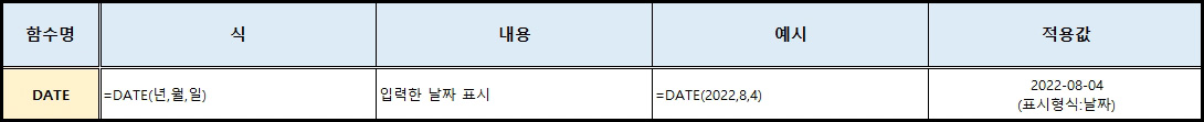 함수에 입력한 날짜를 그대로 표시해 줍니다.