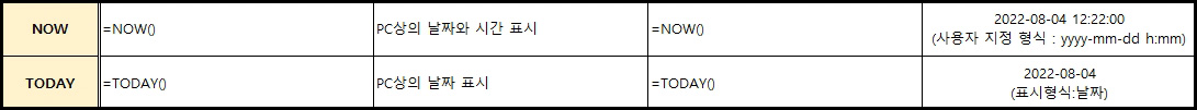 MS 엑셀 (PC 정보 적용) 날짜/시간 함수.
