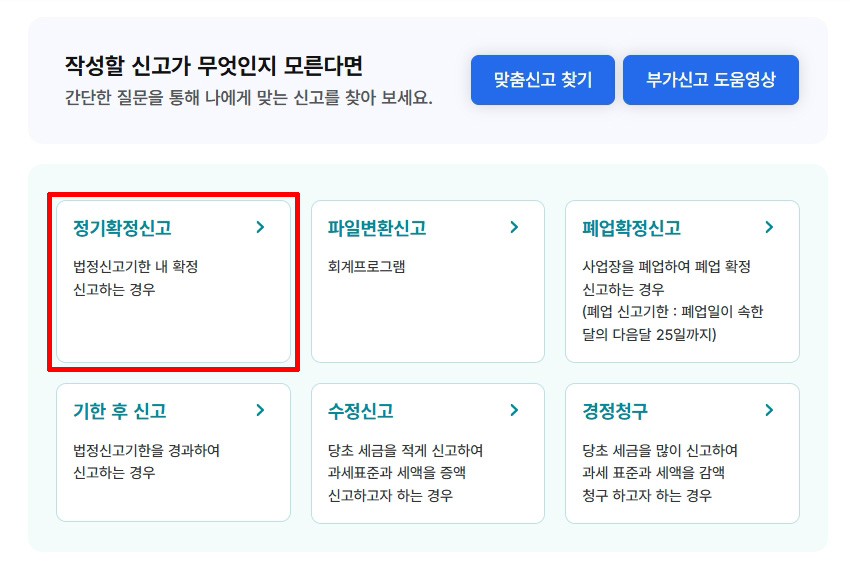 홈택스 > 부가가치세 신고(부가가치세 확정신고) > 정기확정신고