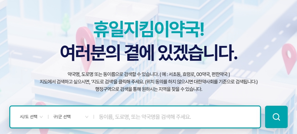 아래 버튼을 누르시면 휴일 지킴이 약국 사이트로 이동됩니다. 바로 가까운 24시간 약국 정보를 바로 확인할 수 있습니다!24시간 약국의 중요성