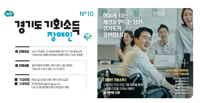 경기도는 중증 장애인의 경제적 자립과 사회 참여를 촉진하기 위해 '장애인 기회소득' 제도를 도입하였습니다. 이 프로그램은 참여자에게 월 10만 원의 지원금을 제공하여 생활 안정을 돕고, 다양한 활동을 통해 건강 증진과 사회적 교류를 촉진합니다.