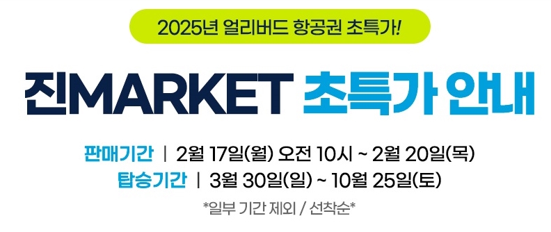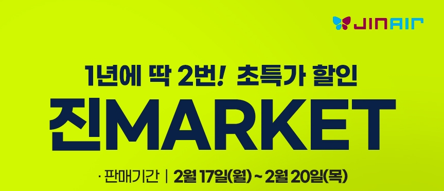 진에어 진마켓은 1년에 두 번 진행하는 대규모 항공권 특가 이벤트입니다.