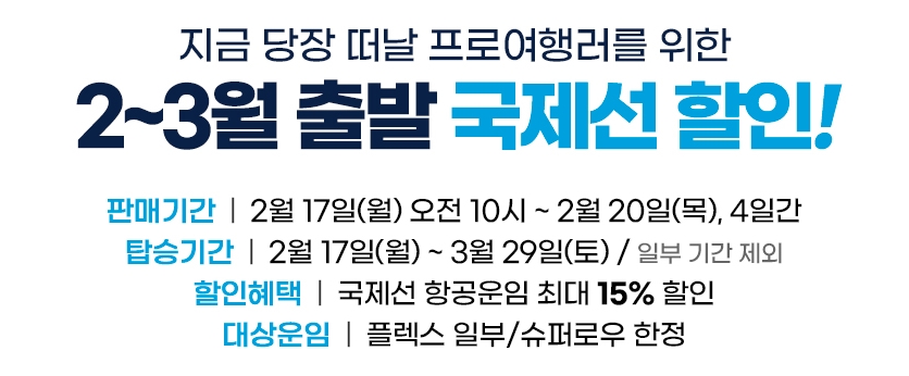 2월 17일(월) 14:00~ : 일본, 중화권, 국내선 얼리버드