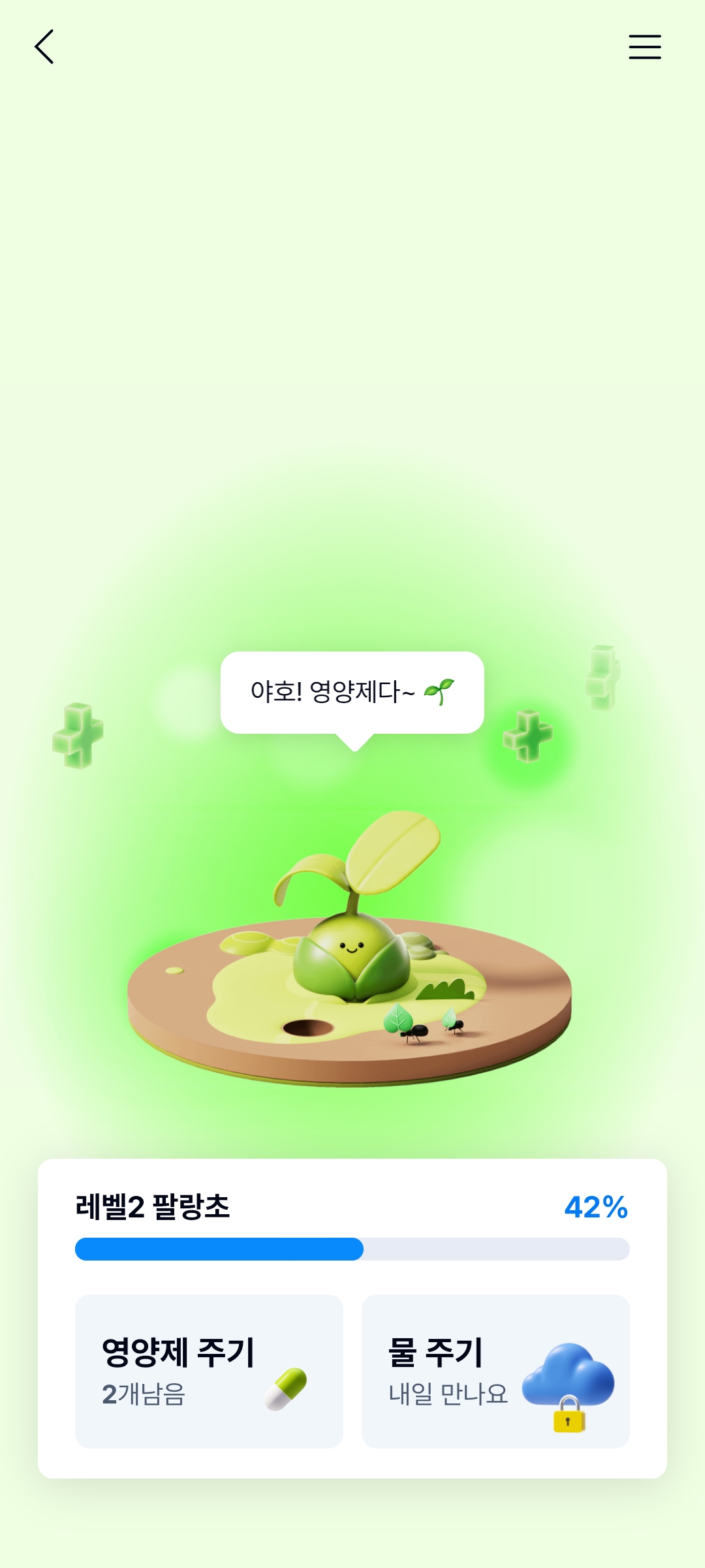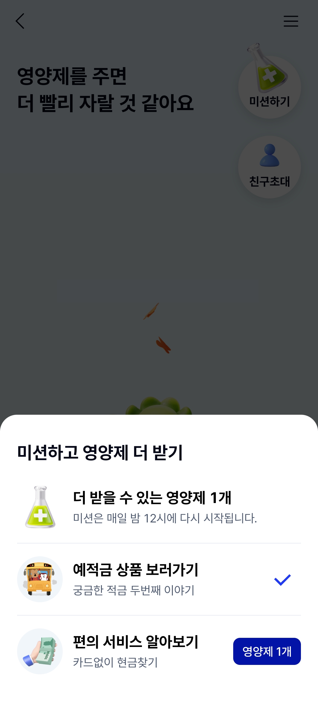 · 영양제 사용 : 기본 2개 지급 + 친구 초대 및 미션 참여로 추가 획득 가능