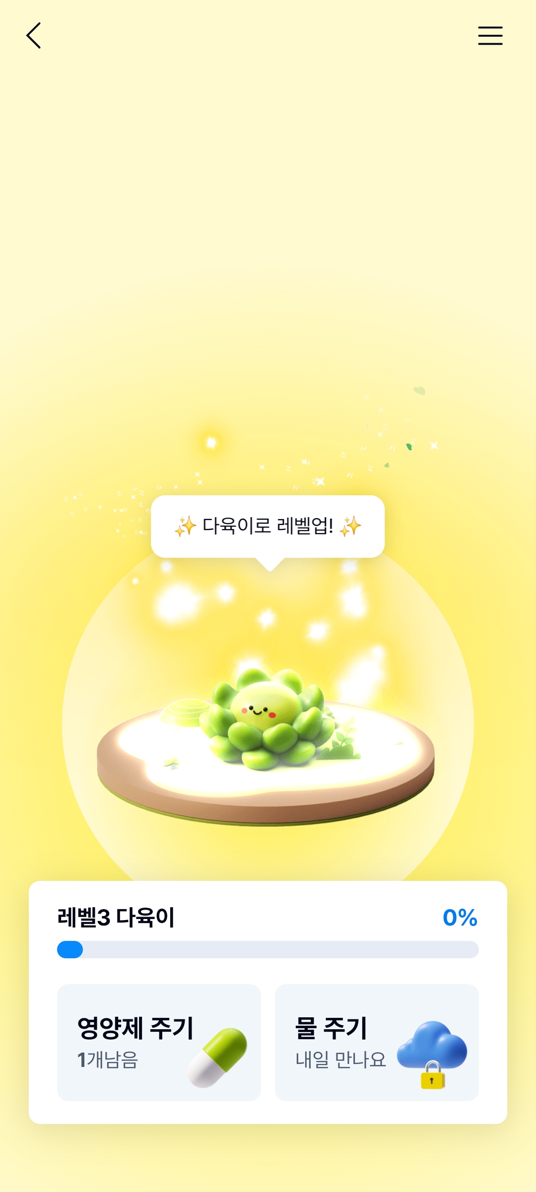 매일 접속해서 물을 주거나 미션을 통해 얻은 영양제를 투여하게 되면 경험치가 쌓이고, 성장하게 됩니다. 최대 레벨까지 자란 후에는 최대 10만 원의 보상을 받을 수도 있습니다.
