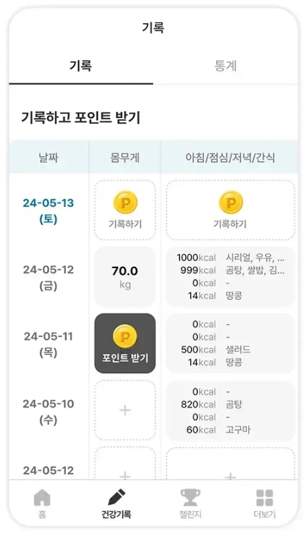1️⃣ 체중 기록 : 매일 체중을 입력하여 건강 상태를 점검합니다. 체중 기록을 통해 포인트가 적립됩니다.