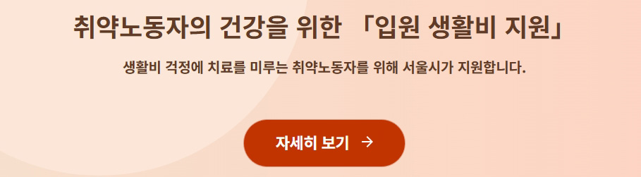 서울형 입원 생활비 지원은 경제적 부담으로 치료를 미루거나 건강검진을 받지 못하는 노동 취약계층을 위해 서울시가 제공하는 지원 제도입니다. 일정 조건을 충족하면 입원 기간 동안 하루 약 9만 원의 생활비를 지원받을 수 있어 큰 도움이 됩니다.