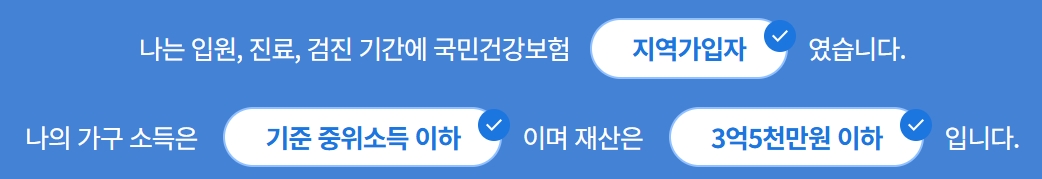 2️⃣ 건강보험 지역가입자 : 입원 또는 검진 기간 동안 국민건강보험 지역가입자로 등록되어 있어야 합니다.