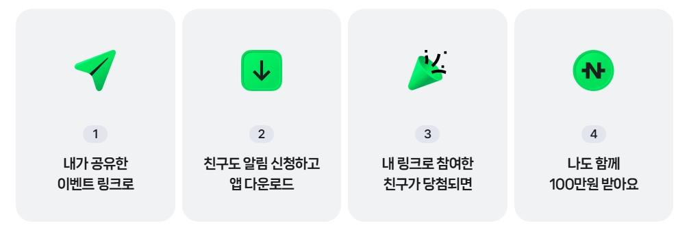 이벤트 링크를 친구에게 공유하면, 친구가 당첨될 때 나도 100만 원을 받는 기회!