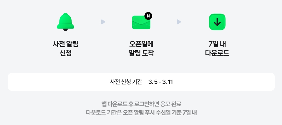 5️⃣ 7일 이내에 앱을 다운로드하고 로그인하면 완료!사전예약 이벤트