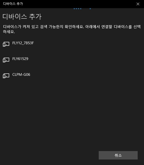 연결 가능한 기기를 검색하는데 여기서 연결하고자 하는 기기를 찾아 클릭하면 됩니다.