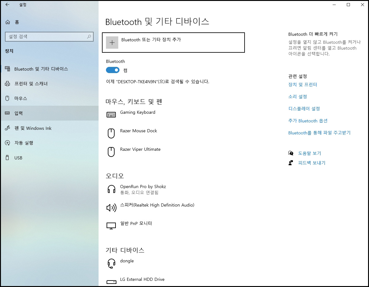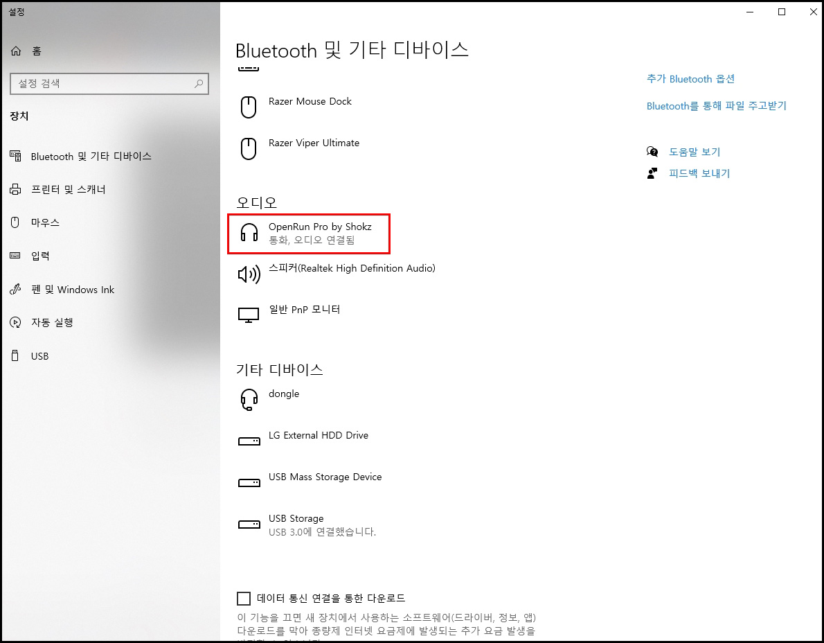 블루투스 설정창에서 오디오 항목을 보면 연결된 제품을 확인할 수 있습니다.