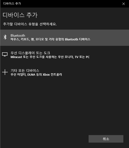 여기서 'Bluetooch 또는 기타 장치 추가'를 클릭합니다.