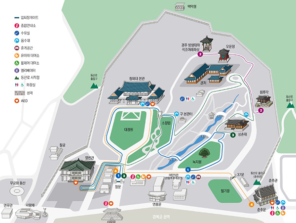 ▪ 역사·문화 코스 : 영빈관, 본관, 녹지원, 상춘재 등을 포함, 소요 시간 약 1시간