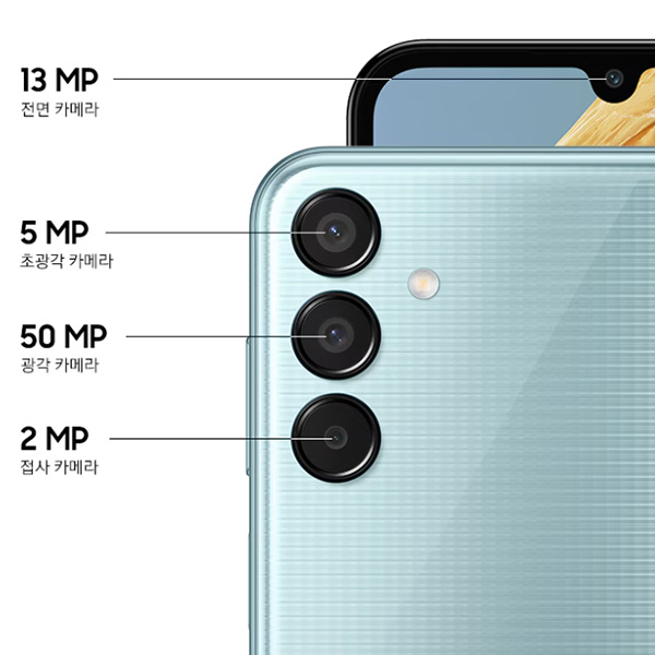 광각부터 접사까지 커버 가능한 트리플 카메라는 일상 사진, 풍경, 클로즈업 촬영까지 자유롭게 활용할 수 있습니다. 전면 카메라도 셀피 촬영에 적합한 해상도를 제공합니다.