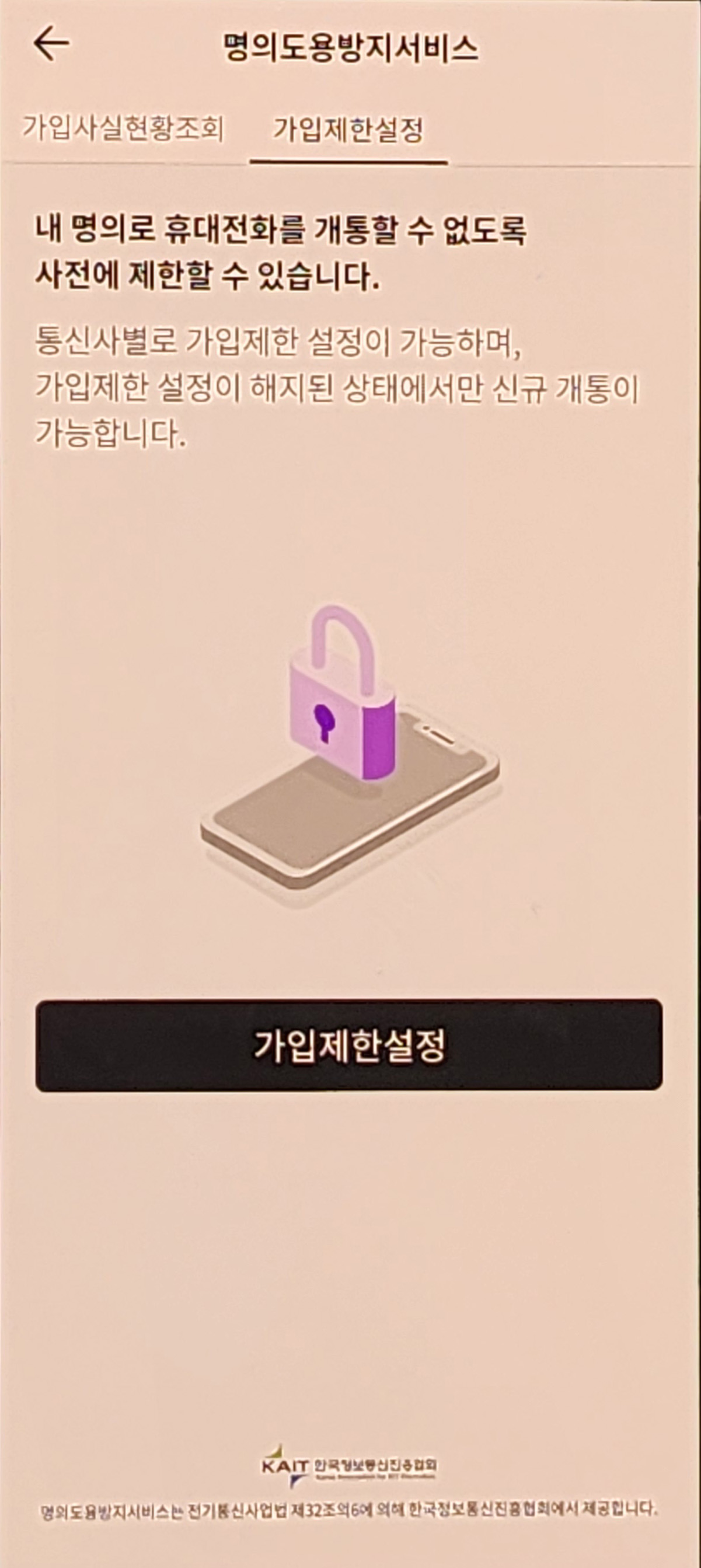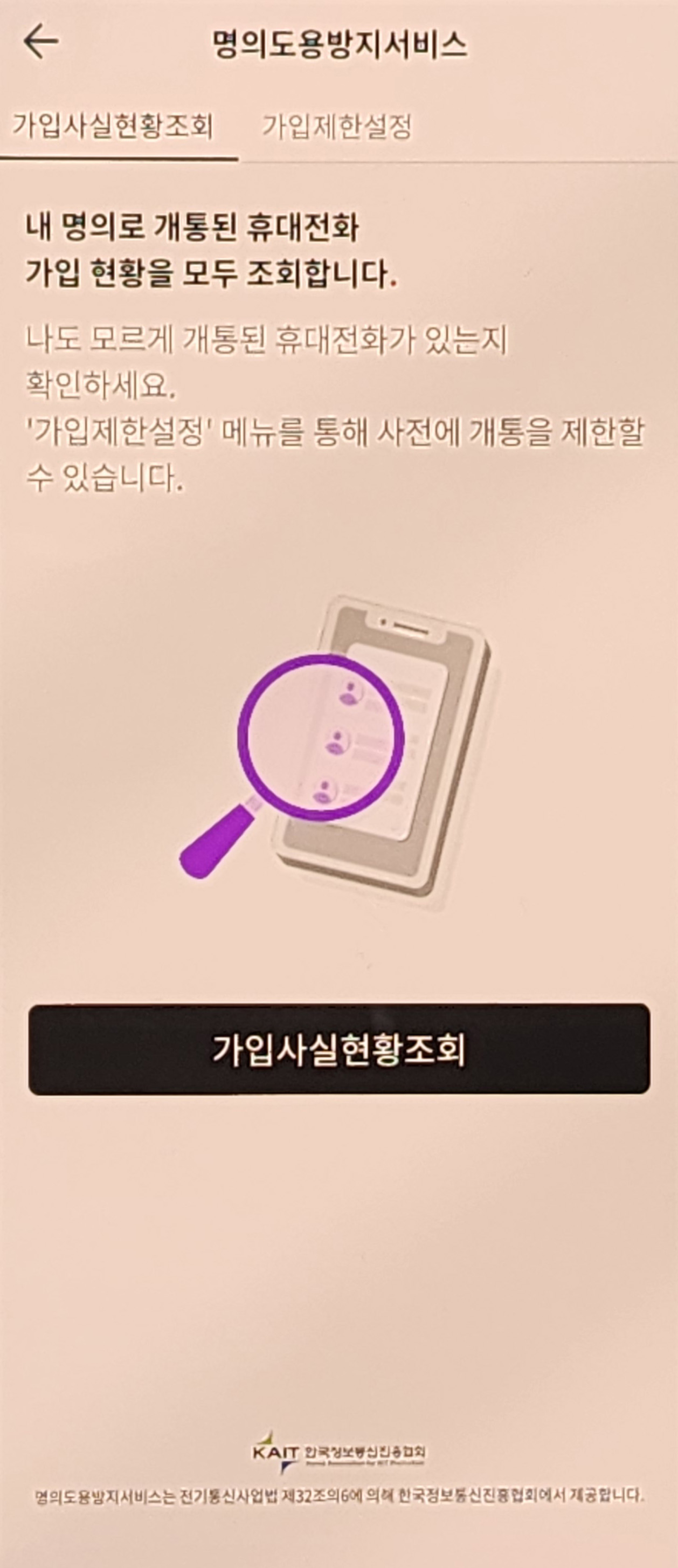 ▪ 기능 : 내 명의로 개통된 휴대폰 회선 확인 및 사전 차단 설정 가능