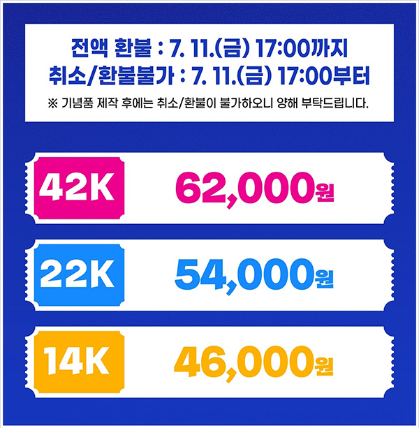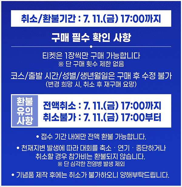 ▪️ 환불 불가 시점 : 위 시간 이후에는 어떤 이유로든 환불 불가▪️ 완보 인증서 신청 : 행사 종료 후 8월 10일까지 온라인 신청 가능