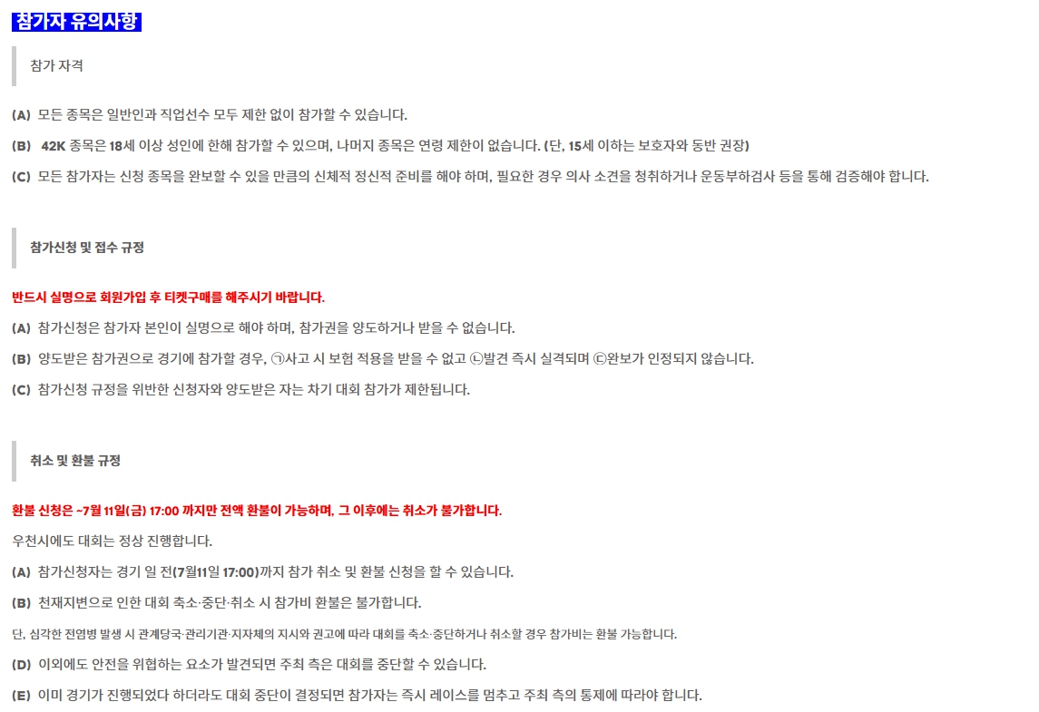 ▪️ 양도 및 대리 참가 금지 : 보험 적용 불가 및 실격 처리