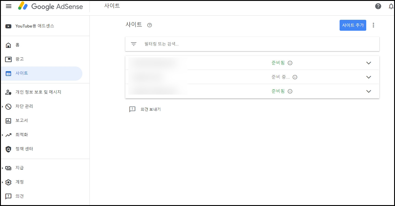 애드센스가 승인 된 경우 준비됨으로 뜨며, 검토 중일 때에는 준비 중...으로 뜨게 됩니다.